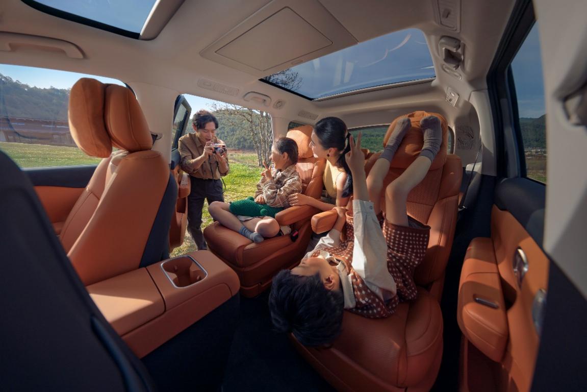唯一标配电动一键大床模式:后排座椅支持一键电动下沉前移,放倒后可形成2米纯平大床,瞬间化身“移动卧室”;唯一配备后备厢观影模式:户外露营后排成床时,可利用床垫、撑杆,并搭配15.6英寸后排屏与21扬声器PSS豪华音响组合,打造沉浸式家庭影院;唯一搭载1663L超大百变后备箱:通过后排座椅放倒及多层储物格等设计,可拓展出无限想象的空间,可同时放置多辆公路自行车,露营、骑行、钓鱼、滑雪、冲浪等户外场景装备统统装得下。
