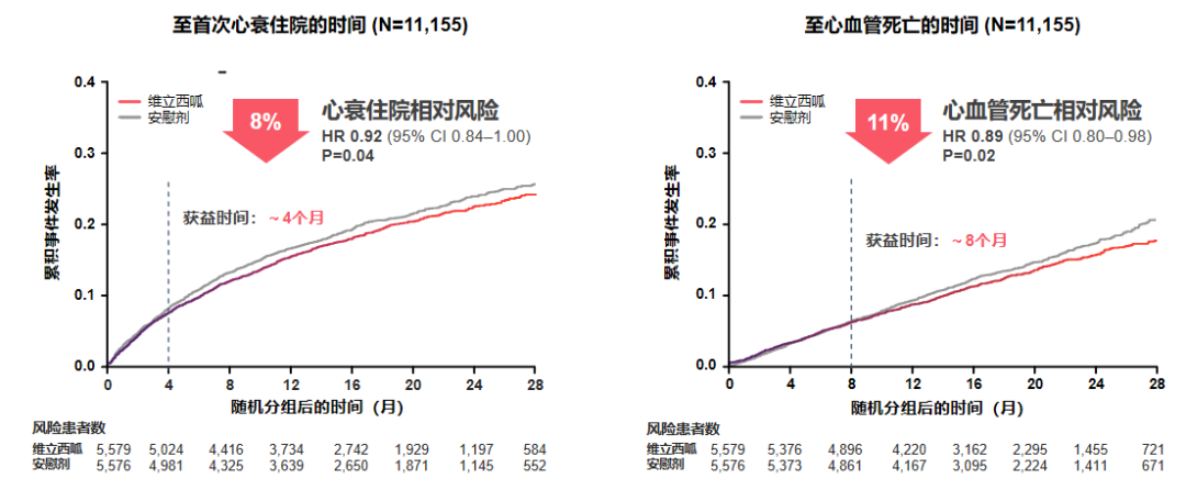 维立西呱可显著降低心衰住院和心血管死亡复合终点风险9%(p=0.009)(图1)。