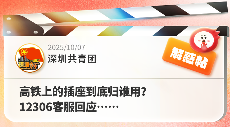 近日,有网友在社媒发帖称,自己乘坐高铁时,想给手机充电,却被前排乘客告知自己正前方充电口的使用权属于前方座位,高铁上充电口的使用权,到底如何划分?@深圳共青团