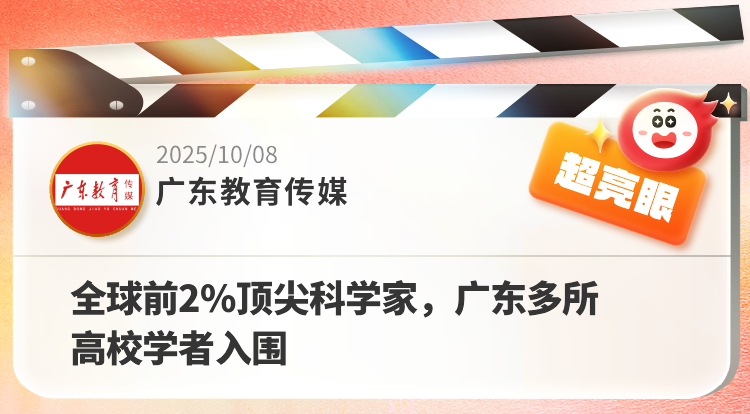 近日,《2025年全球前2%顶尖科学家榜单》发布,广东高校表现十分亮眼。来看广东各大高校分别都有多少名学者入围>>@广东教育传媒